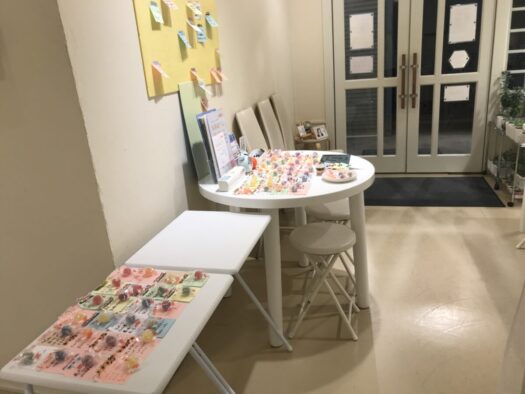 願い事を書いたメッセージカード、クリーム色やうぐいす色のボードに利用者様が選んだテープを付けて貼れば、願いが叶う予兆になると自然と剥がれてそのことを教えてくれます。